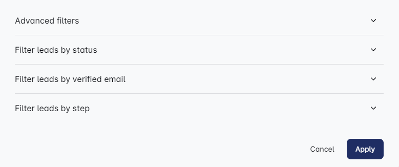 Click the funnel icon, and voilà! You’re now in the lead filtering zone. This is where the magic happens. Customize which leads you want to see and export by applying these filters: