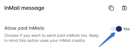 Here's where it gets interesting: Linked Crush enables you to blend paid and free InMails in your Smart Sequence. Our algorithm makes a difference between Open Profile users and those who can only receive paid InMails. By toggling the "Allow paid InMails" button in the platform, you empower the Smart Sequence to make this decision for you, ensuring a smooth path to your lead through InMail.